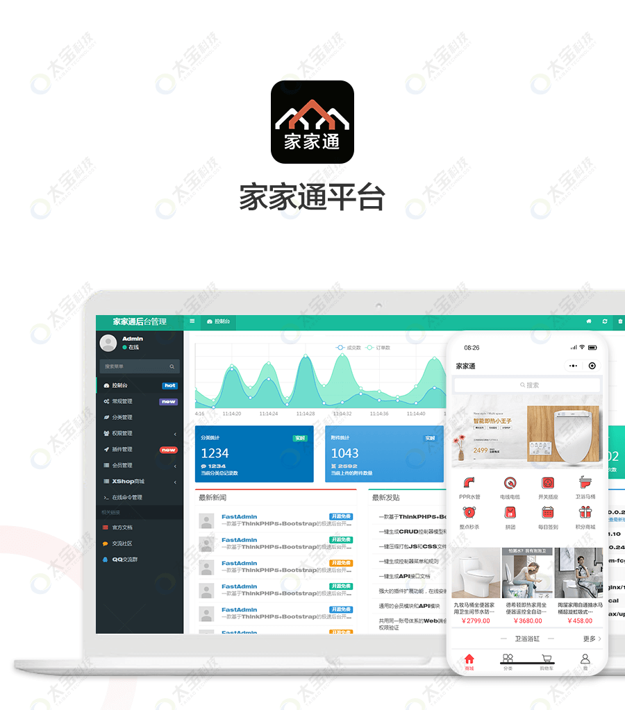 家家通平臺是一款集家居建材的銷售商城,用戶可以在該平臺上采購家居和建材方面的商品,領(lǐng)取會員專享優(yōu)惠劵,參加整點(diǎn)秒殺活動等,后臺管理系統(tǒng)端包括商品管理模塊,訂單管理模塊,用戶管理模塊,分銷中心,員工管理和數(shù)據(jù)統(tǒng)計(jì)等功能