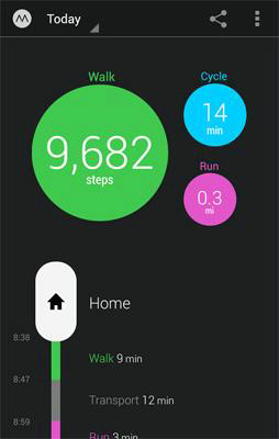 計步器類產(chǎn)品在市面上早已屢見不鮮,諸如Fitbit Force等都是人們熟知的健身設(shè)備。不過當(dāng)你安裝了Moves應(yīng)用之后,你便不再需要這些多余的外置設(shè)備了。Moves可以追蹤你的每一次腳步運動,記錄你的運動距離甚至能夠區(qū)分你的運動狀態(tài)。除了作為計步器使用之外,Moves還能夠在一天結(jié)束時查看自己的作息狀況,回顧自己一天都做了哪些運動,做到心中有數(shù)。