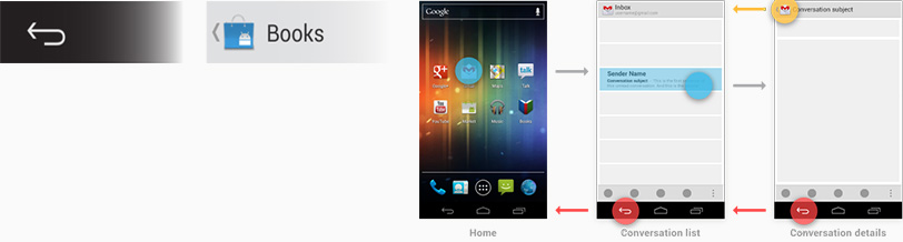 在Android4.0 app設(shè)計準則中,特別強調(diào)為Android設(shè)計純粹的Android app,切勿使用其 他平臺特定元素的注意事項,有以下5個方面: