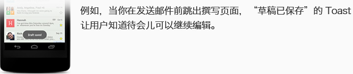 4、toast提示:toast提供了輕量級的反饋,顯示幾秒鐘之后會自動消失;