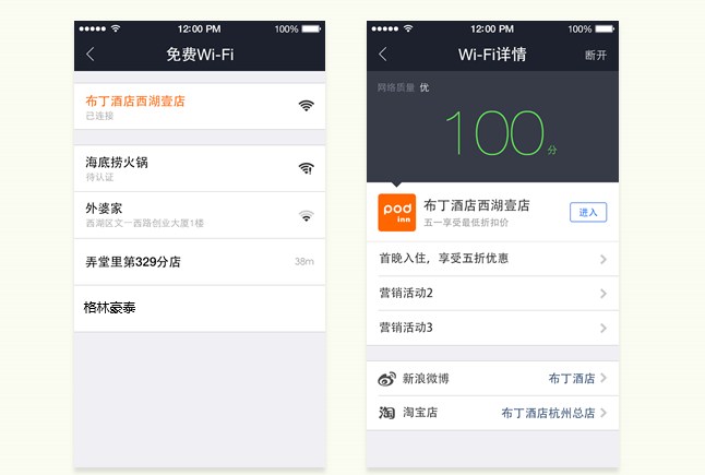 在發(fā)現(xiàn)用戶層面,基于用戶已有的瀏覽和支付行為,支付寶將進(jìn)行相關(guān)的商戶推薦,或是進(jìn)行購(gòu)買后服務(wù)窗的關(guān)注推薦。支付寶已經(jīng)在小范圍測(cè)試“電子圍欄”功能,對(duì)于已經(jīng)開展合作的商家來說,用戶到店后,不再需要開口向服務(wù)員問詢WiFi密碼,而是通過支付寶直接連接上店內(nèi)WiFi,未來還會(huì)就iBeacon等功能進(jìn)行更多的服務(wù)嘗試——這也能帶來一部分的客戶轉(zhuǎn)化。